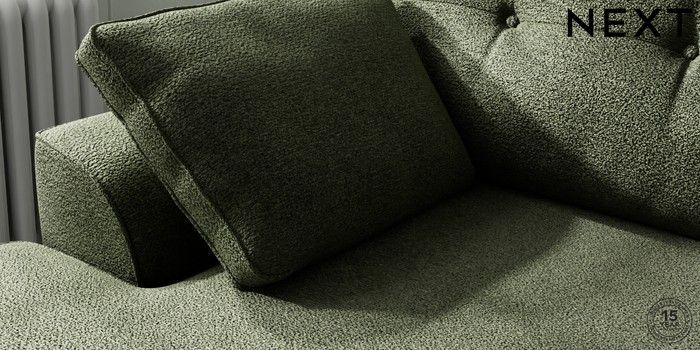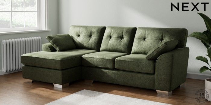 7.2.10 Stamford Buttoned Back Medium Sofa Chaise - Left Hand Boucle Chenille Dark Moss Green Large Square Angle - Chrome Metal | Made Click here to use our website with more accessibility support, for example screen readers