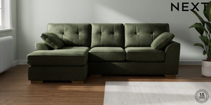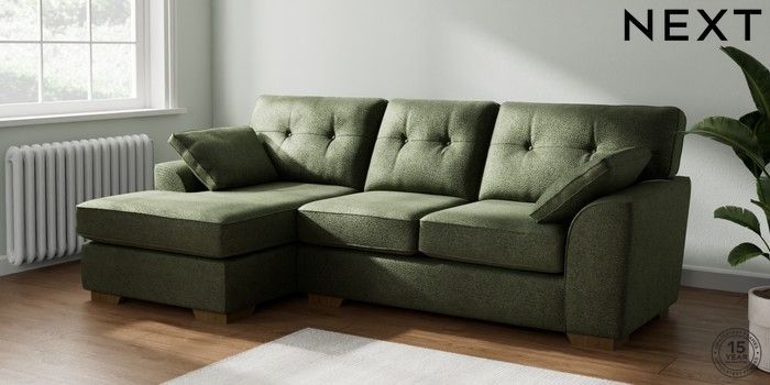 7.2.10 Stamford Buttoned Back Medium Sofa Chaise - Left Hand Boucle Chenille Dark Moss Green Large Square Angle - Mid | Made Click here to use our website with more accessibility support, for example screen readers