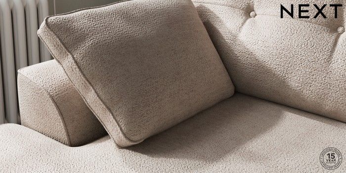 7.2.10 Stamford Buttoned Back Medium Sofa Chaise - Left Hand Boucle Chenille Light Natural Large Square Angle - Dark | Made Click here to use our website with more accessibility support, for example screen readers