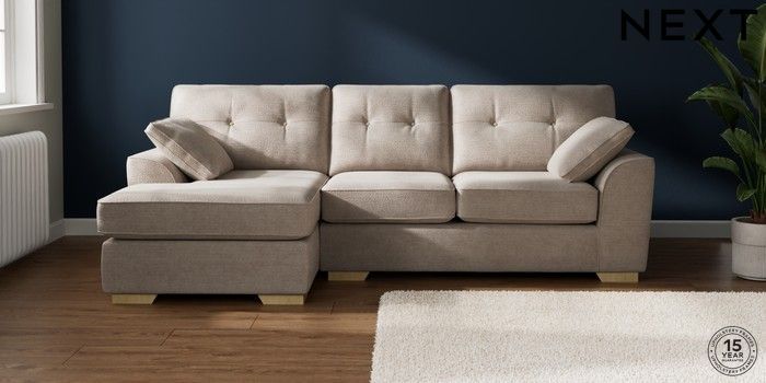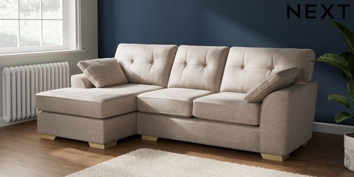 7.2.10 Stamford Buttoned Back Medium Sofa Chaise - Left Hand Boucle Chenille Light Natural Large Square Angle - Light | Made Click here to use our website with more accessibility support, for example screen readers