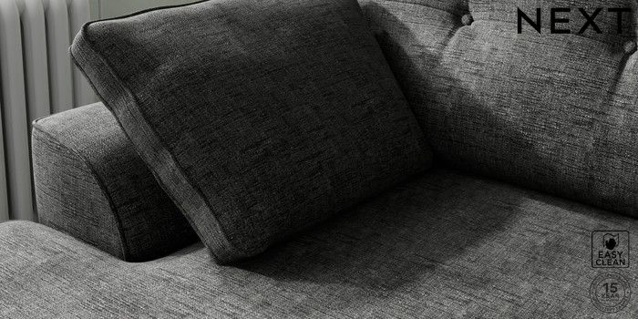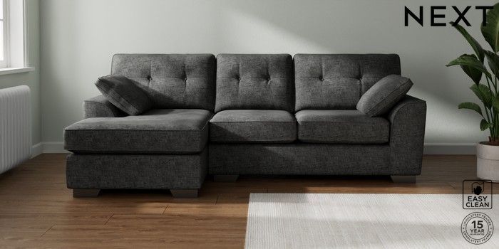 7.2.10 Stamford Buttoned Back Medium Sofa Chaise - Left Hand Boucle Weave Easy Clean Charcoal Grey Large Square Angle - Gunmetal | Made Click here to use our website with more accessibility support, for example screen readers