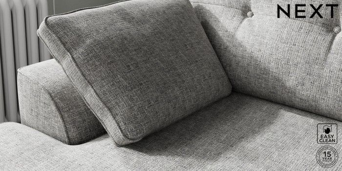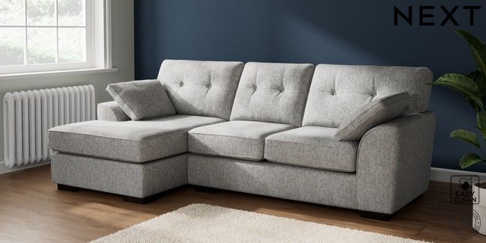 7.2.10 Stamford Buttoned Back Medium Sofa Chaise - Left Hand Chunky Boucle Easy Clean Light Grey Large Square Angle - Dark | Made Click here to use our website with more accessibility support, for example screen readers
