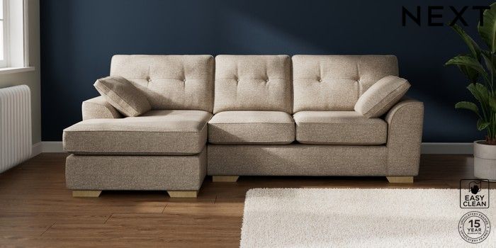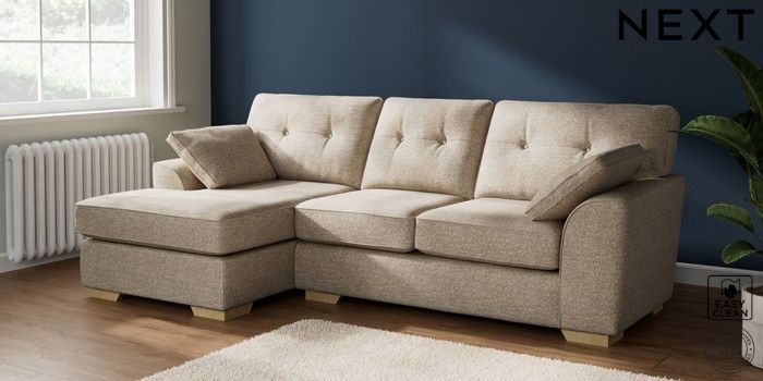 7.2.10 Stamford Buttoned Back Medium Sofa Chaise - Left Hand Chunky Boucle Easy Clean Mid Natural Large Square Angle - Light | Made Click here to use our website with more accessibility support, for example screen readers