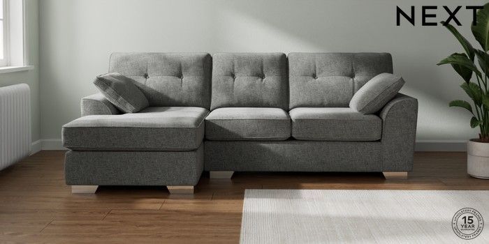 7.2.10 Stamford Buttoned Back Medium Sofa Chaise - Left Hand Chunky Chenille Dark Grey Large Square Angle - Chrome Metal | Made Click here to use our website with more accessibility support, for example screen readers