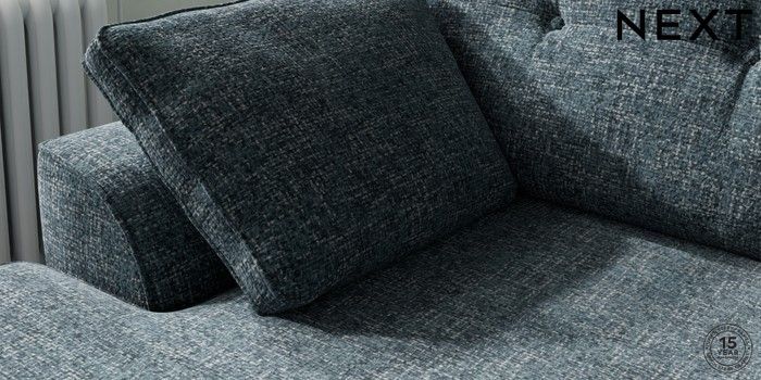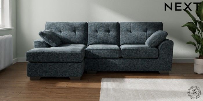 7.2.10 Stamford Buttoned Back Medium Sofa Chaise - Left Hand Chunky Chenille Dark Navy Blue Large Square Angle - Gunmetal | Made Click here to use our website with more accessibility support, for example screen readers