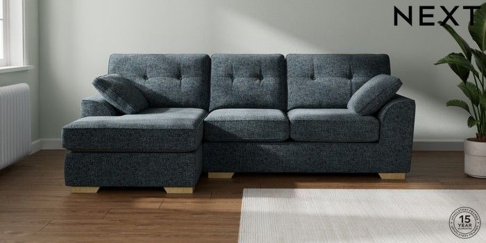 7.2.10 Stamford Buttoned Back Medium Sofa Chaise - Left Hand Chunky Chenille Dark Navy Blue Large Square Angle - Light | Made Click here to use our website with more accessibility support, for example screen readers