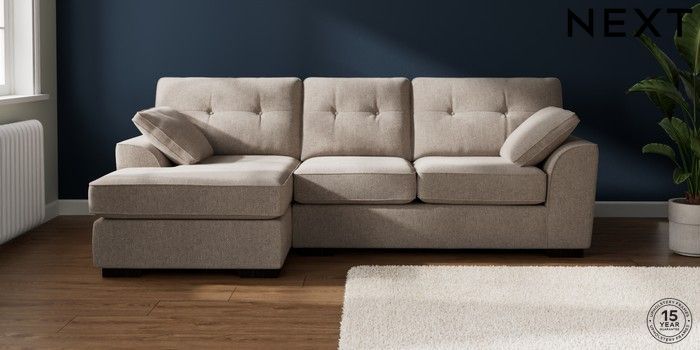 7.2.10 Stamford Buttoned Back Medium Sofa Chaise - Left Hand Chunky Chenille Light Dove Large Square Angle - Dark | Made Click here to use our website with more accessibility support, for example screen readers