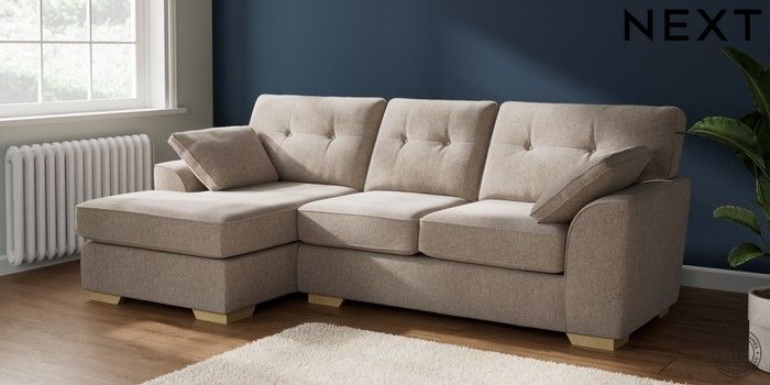 7.2.10 Stamford Buttoned Back Medium Sofa Chaise - Left Hand Chunky Chenille Light Dove Large Square Angle - Light | Made Click here to use our website with more accessibility support, for example screen readers