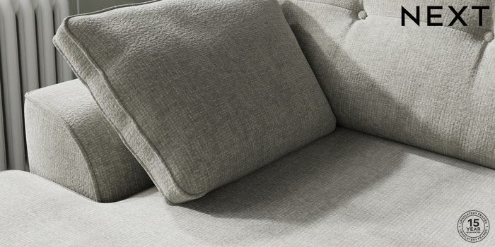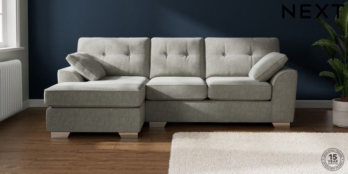 7.2.10 Stamford Buttoned Back Medium Sofa Chaise - Left Hand Chunky Chenille Light Grey Large Square Angle - Chrome Metal | Made Click here to use our website with more accessibility support, for example screen readers