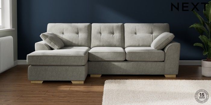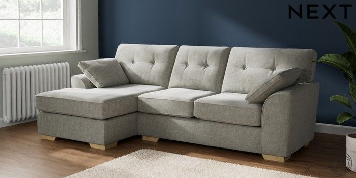 7.2.10 Stamford Buttoned Back Medium Sofa Chaise - Left Hand Chunky Chenille Light Grey Large Square Angle - Light | Made Click here to use our website with more accessibility support, for example screen readers