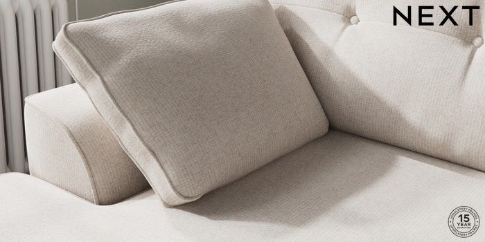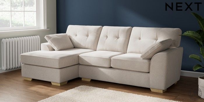 7.2.10 Stamford Buttoned Back Medium Sofa Chaise - Left Hand Chunky Chenille Oyster Large Square Angle - Light | Made Click here to use our website with more accessibility support, for example screen readers