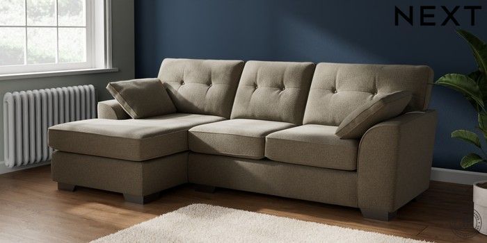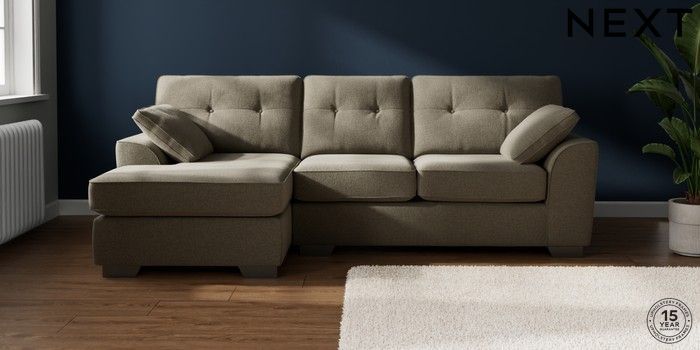 7.2.10 Stamford Buttoned Back Medium Sofa Chaise - Left Hand Chunky Marl Light Olive Green Large Square Angle - Gunmetal | Made Click here to use our website with more accessibility support, for example screen readers