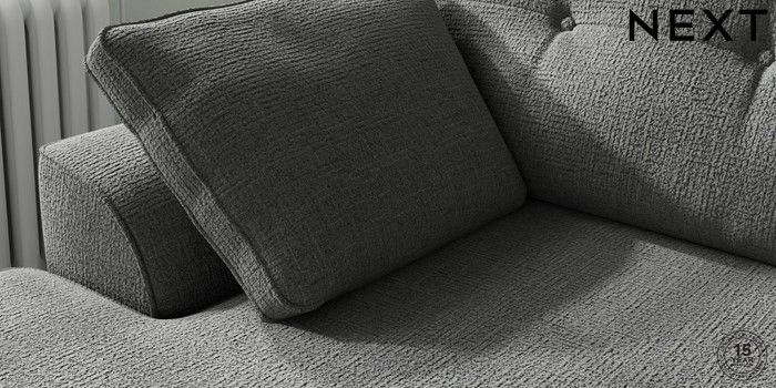 7.2.10 Stamford Buttoned Back Medium Sofa Chaise - Left Hand Chunky Texture Dark Grey Large Square Angle - Brushed Brass | Made Click here to use our website with more accessibility support, for example screen readers