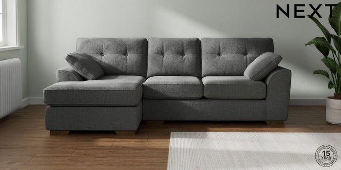 7.2.10 Stamford Buttoned Back Medium Sofa Chaise - Left Hand Chunky Texture Dark Grey Large Square Angle - Mid | Made Click here to use our website with more accessibility support, for example screen readers