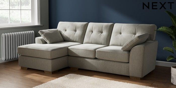 7.2.10 Stamford Buttoned Back Medium Sofa Chaise - Left Hand Chunky Texture Dove Large Square Angle - Mid | Made Click here to use our website with more accessibility support, for example screen readers