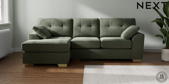 7.2.10 Stamford Buttoned Back Medium Sofa Chaise - Left Hand Chunky Texture Mid Forest Green Large Square Angle - Brushed Brass | Made Click here to use our website with more accessibility support, for example screen readers