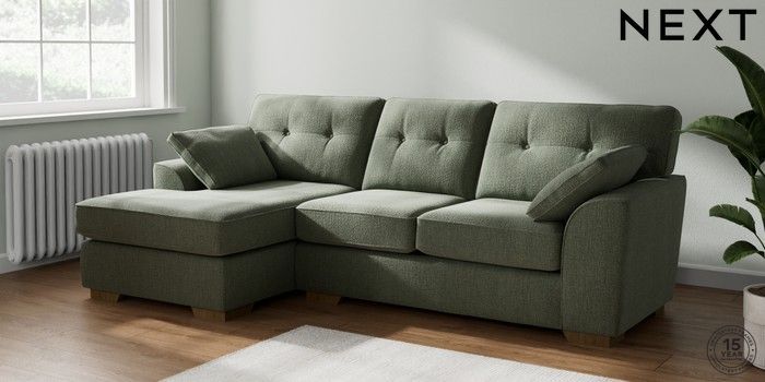 7.2.10 Stamford Buttoned Back Medium Sofa Chaise - Left Hand Chunky Texture Mid Forest Green Large Square Angle - Mid | Made Click here to use our website with more accessibility support, for example screen readers