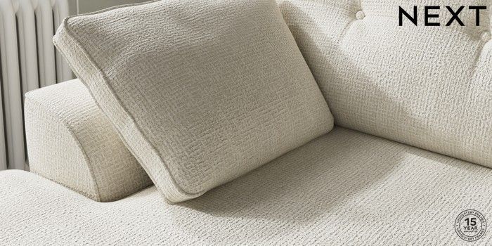 7.2.10 Stamford Buttoned Back Medium Sofa Chaise - Left Hand Chunky Texture Oyster Large Square Angle - Chrome Metal | Made Click here to use our website with more accessibility support, for example screen readers