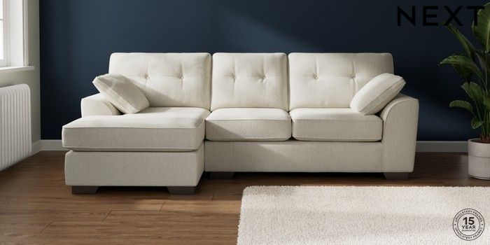 7.2.10 Stamford Buttoned Back Medium Sofa Chaise - Left Hand Chunky Texture Oyster Large Square Angle - Gunmetal | Made Click here to use our website with more accessibility support, for example screen readers