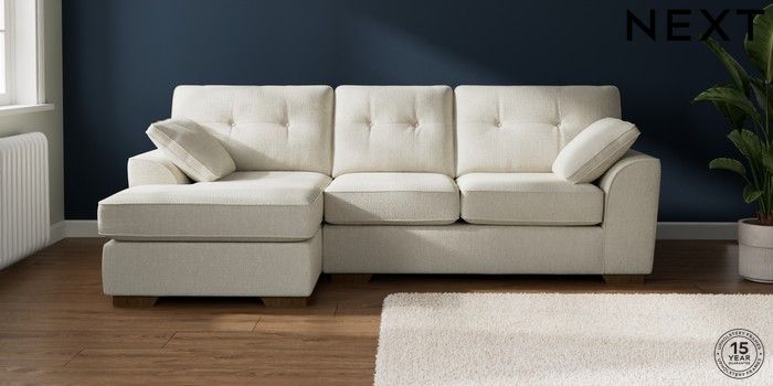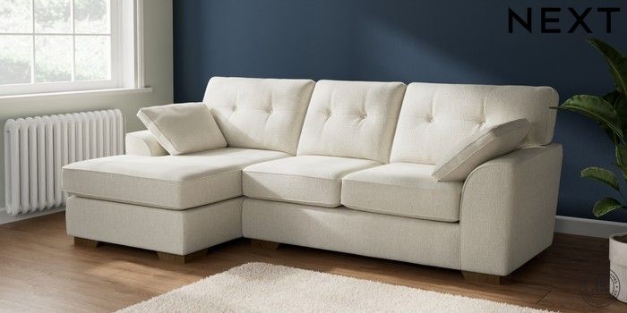 7.2.10 Stamford Buttoned Back Medium Sofa Chaise - Left Hand Chunky Texture Oyster Large Square Angle - Mid | Made Click here to use our website with more accessibility support, for example screen readers
