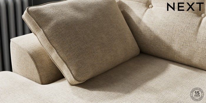 7.2.10 Stamford Buttoned Back Medium Sofa Chaise - Left Hand Chunky Weave Cream Large Square Angle - Brushed Brass | Made Click here to use our website with more accessibility support, for example screen readers