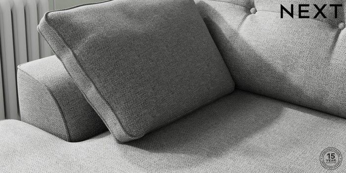 7.2.10 Stamford Buttoned Back Medium Sofa Chaise - Left Hand Chunky Weave Mid Grey Large Square Angle - Brushed Brass | Made Click here to use our website with more accessibility support, for example screen readers