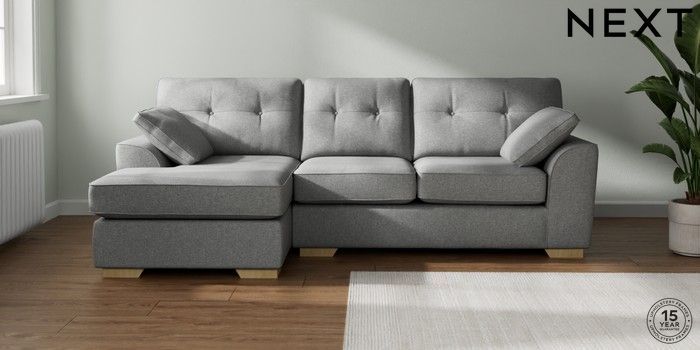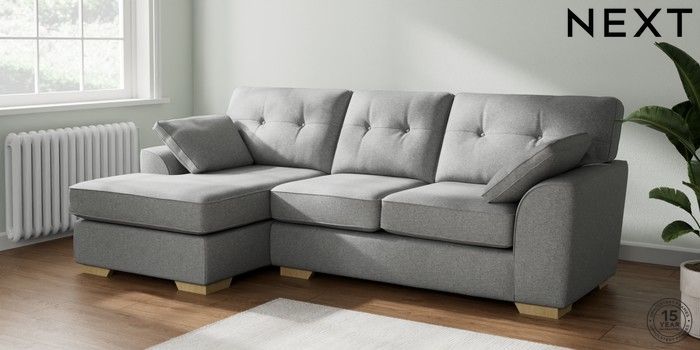 7.2.10 Stamford Buttoned Back Medium Sofa Chaise - Left Hand Chunky Weave Mid Grey Large Square Angle - Light | Made Click here to use our website with more accessibility support, for example screen readers