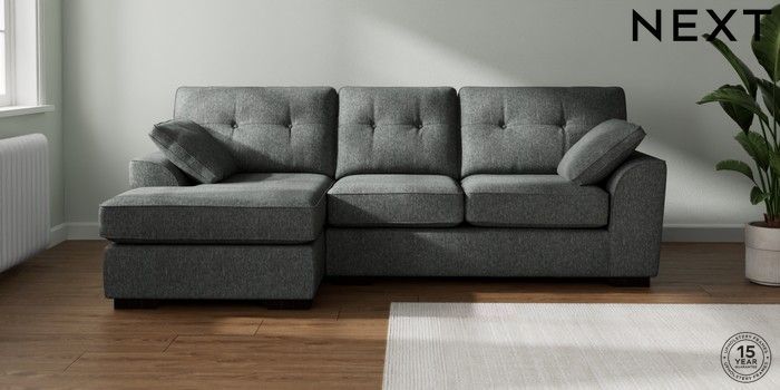 7.2.10 Stamford Buttoned Back Medium Sofa Chaise - Left Hand Cotswold Chenille Dark Grey Large Square Angle - Dark | Made Click here to use our website with more accessibility support, for example screen readers