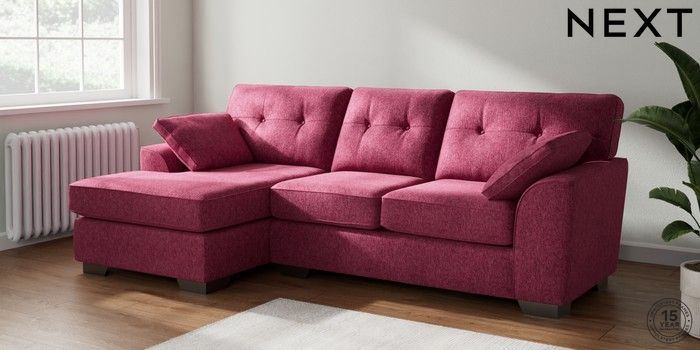 7.2.10 Stamford Buttoned Back Medium Sofa Chaise - Left Hand Cotswold Chenille Dark Raspberry Pink Large Square Angle - Gunmetal | Made Click here to use our website with more accessibility support, for example screen readers
