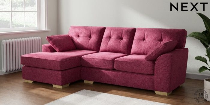 7.2.10 Stamford Buttoned Back Medium Sofa Chaise - Left Hand Cotswold Chenille Dark Raspberry Pink Large Square Angle - Light | Made Click here to use our website with more accessibility support, for example screen readers
