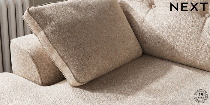7.2.10 Stamford Buttoned Back Medium Sofa Chaise - Left Hand Cotswold Chenille Light Natural Large Square Angle - Chrome Metal | Made Click here to use our website with more accessibility support, for example screen readers