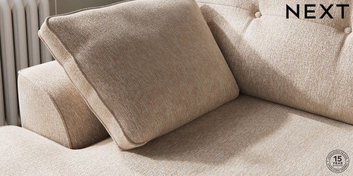 7.2.10 Stamford Buttoned Back Medium Sofa Chaise - Left Hand Cotswold Chenille Light Natural Large Square Angle - Dark | Made Click here to use our website with more accessibility support, for example screen readers