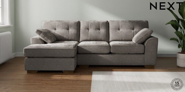 7.2.10 Stamford Buttoned Back Medium Sofa Chaise - Left Hand Distressed Velour French Grey Large Square Angle - Mid | Made Click here to use our website with more accessibility support, for example screen readers