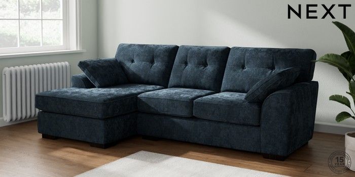 7.2.10 Stamford Buttoned Back Medium Sofa Chaise - Left Hand Distressed Velour Midnight Blue Large Square Angle - Dark | Made Click here to use our website with more accessibility support, for example screen readers