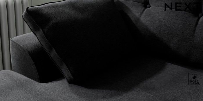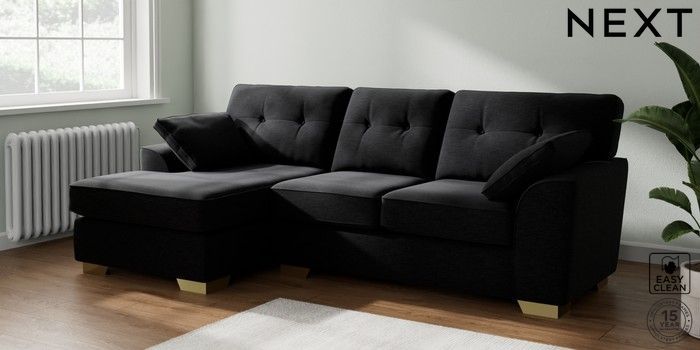 7.2.10 Stamford Buttoned Back Medium Sofa Chaise - Left Hand Fine Chenille Easy Clean Black Large Square Angle - Brushed Brass | Made Click here to use our website with more accessibility support, for example screen readers