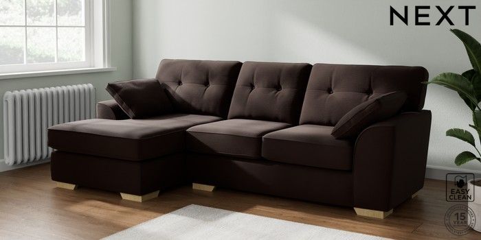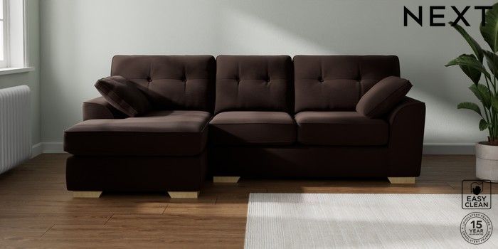 7.2.10 Stamford Buttoned Back Medium Sofa Chaise - Left Hand Fine Chenille Easy Clean Chocolate Brown Large Square Angle - Light | Made Click here to use our website with more accessibility support, for example screen readers