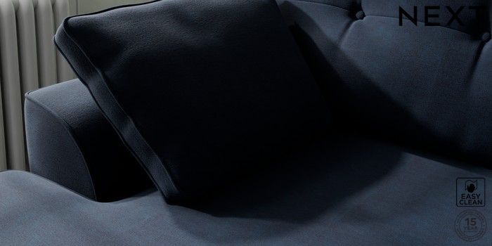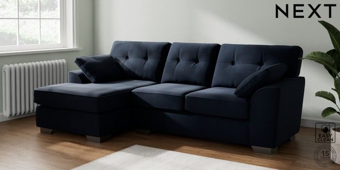 7.2.10 Stamford Buttoned Back Medium Sofa Chaise - Left Hand Fine Chenille Easy Clean Dark Navy Blue Large Square Angle - Gunmetal | Made Click here to use our website with more accessibility support, for example screen readers