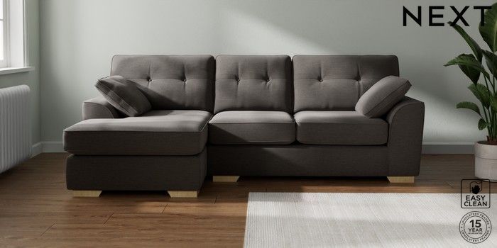 7.2.10 Stamford Buttoned Back Medium Sofa Chaise - Left Hand Fine Chenille Easy Clean Dark Smoke Grey Large Square Angle - Light | Made Click here to use our website with more accessibility support, for example screen readers