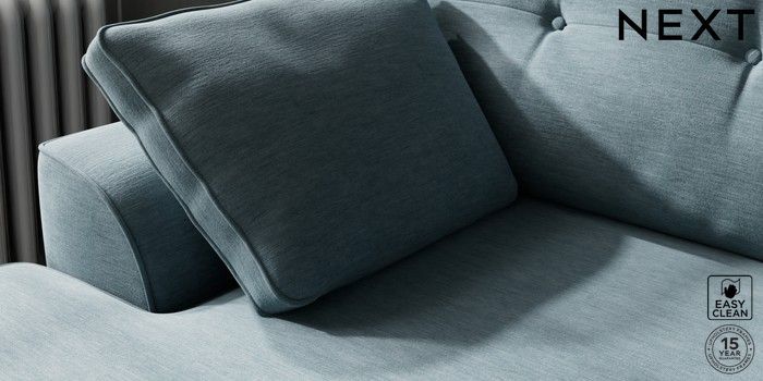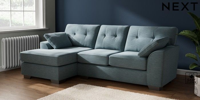 7.2.10 Stamford Buttoned Back Medium Sofa Chaise - Left Hand Fine Chenille Easy Clean Mid Blue Large Square Angle - Gunmetal | Made Click here to use our website with more accessibility support, for example screen readers