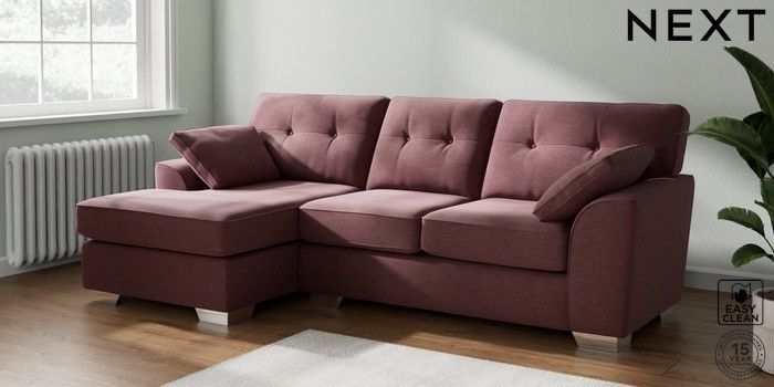 7.2.10 Stamford Buttoned Back Medium Sofa Chaise - Left Hand Fine Chenille Easy Clean Mid Mulberry Purple Large Square Angle - Chrome Metal | Made Click here to use our website with more accessibility support, for example screen readers