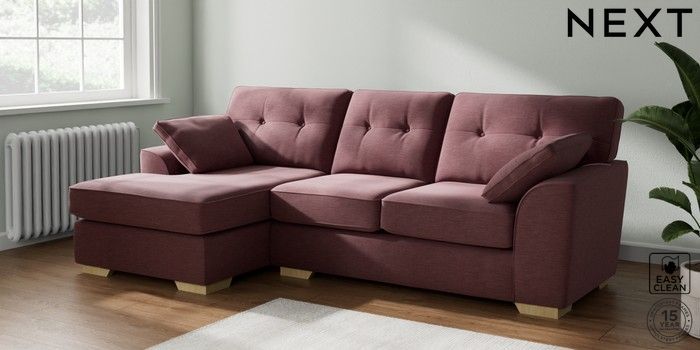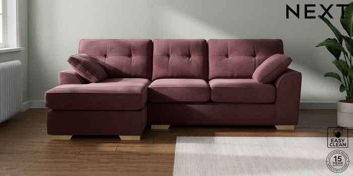 7.2.10 Stamford Buttoned Back Medium Sofa Chaise - Left Hand Fine Chenille Easy Clean Mid Mulberry Purple Large Square Angle - Light | Made Click here to use our website with more accessibility support, for example screen readers