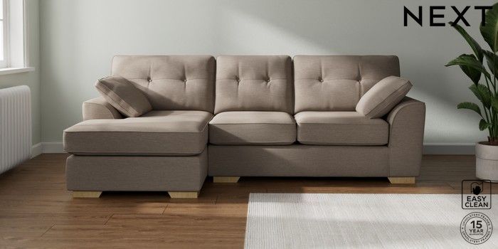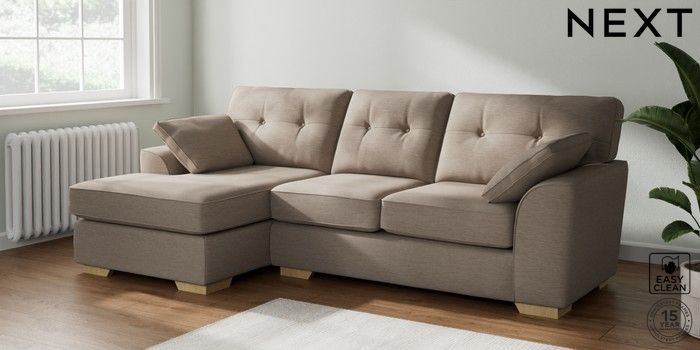 7.2.10 Stamford Buttoned Back Medium Sofa Chaise - Left Hand Fine Chenille Easy Clean Mid Taupe Brown Large Square Angle - Light | Made Click here to use our website with more accessibility support, for example screen readers
