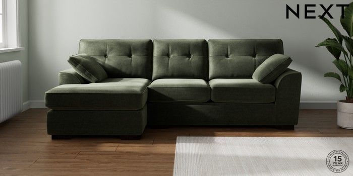 7.2.10 Stamford Buttoned Back Medium Sofa Chaise - Left Hand Luxe Chenille Mid Green Large Square Angle - Dark | Made Click here to use our website with more accessibility support, for example screen readers