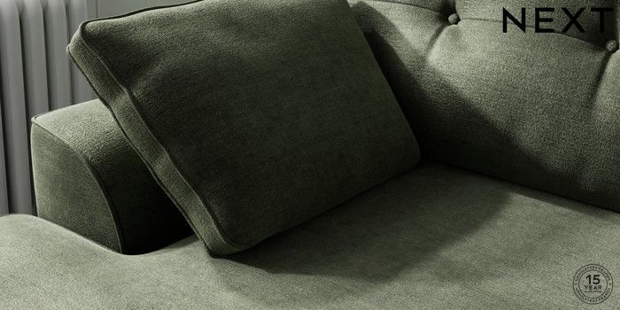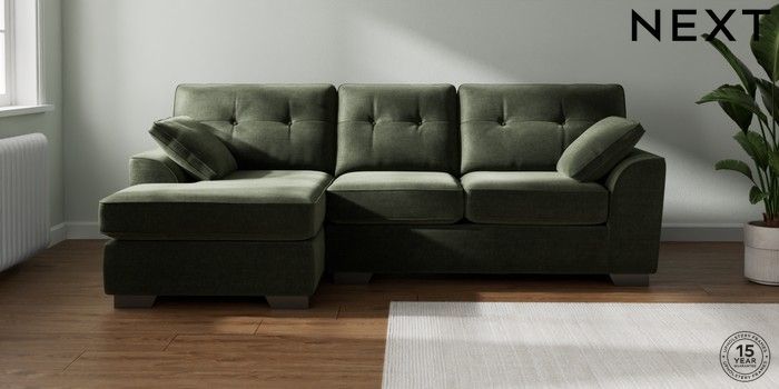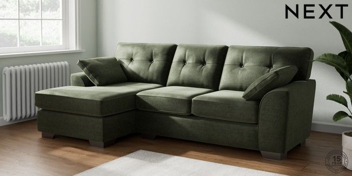 7.2.10 Stamford Buttoned Back Medium Sofa Chaise - Left Hand Luxe Chenille Mid Green Large Square Angle - Gunmetal | Made Click here to use our website with more accessibility support, for example screen readers