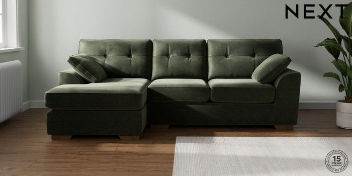 7.2.10 Stamford Buttoned Back Medium Sofa Chaise - Left Hand Luxe Chenille Mid Green Large Square Angle - Mid | Made Click here to use our website with more accessibility support, for example screen readers