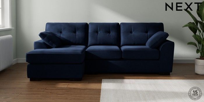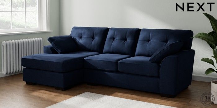 7.2.10 Stamford Buttoned Back Medium Sofa Chaise - Left Hand Luxe Chenille Navy Blue Large Square Angle - Dark | Made Click here to use our website with more accessibility support, for example screen readers