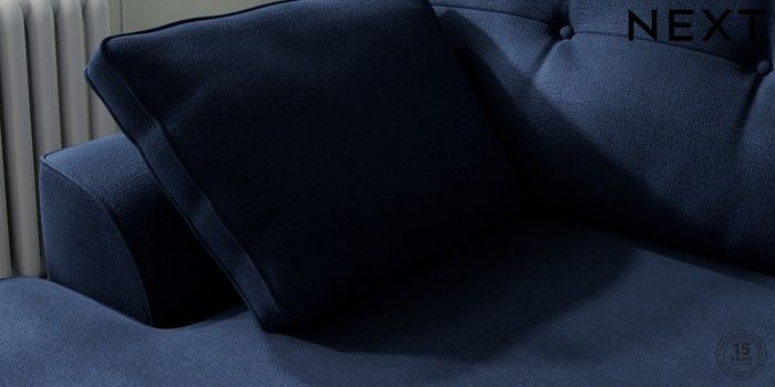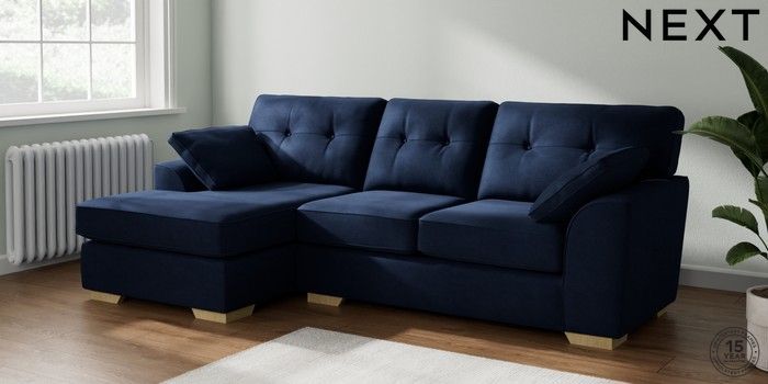 7.2.10 Stamford Buttoned Back Medium Sofa Chaise - Left Hand Luxe Chenille Navy Blue Large Square Angle - Light | Made Click here to use our website with more accessibility support, for example screen readers