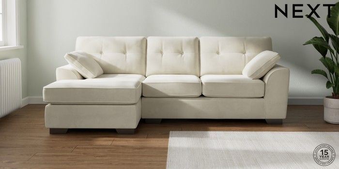 7.2.10 Stamford Buttoned Back Medium Sofa Chaise - Left Hand Luxe Chenille Oyster Large Square Angle - Gunmetal | Made Click here to use our website with more accessibility support, for example screen readers