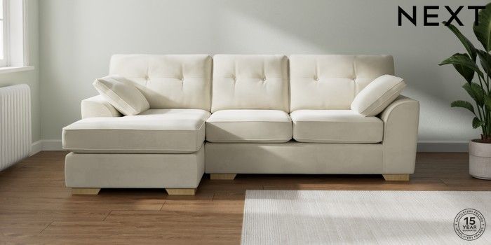 7.2.10 Stamford Buttoned Back Medium Sofa Chaise - Left Hand Luxe Chenille Oyster Large Square Angle - Light | Made Click here to use our website with more accessibility support, for example screen readers