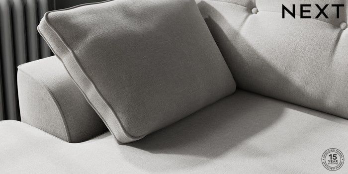 7.2.10 Stamford Buttoned Back Medium Sofa Chaise - Left Hand Natural Mix Light Grey Large Square Angle - Brushed Brass | Made Click here to use our website with more accessibility support, for example screen readers